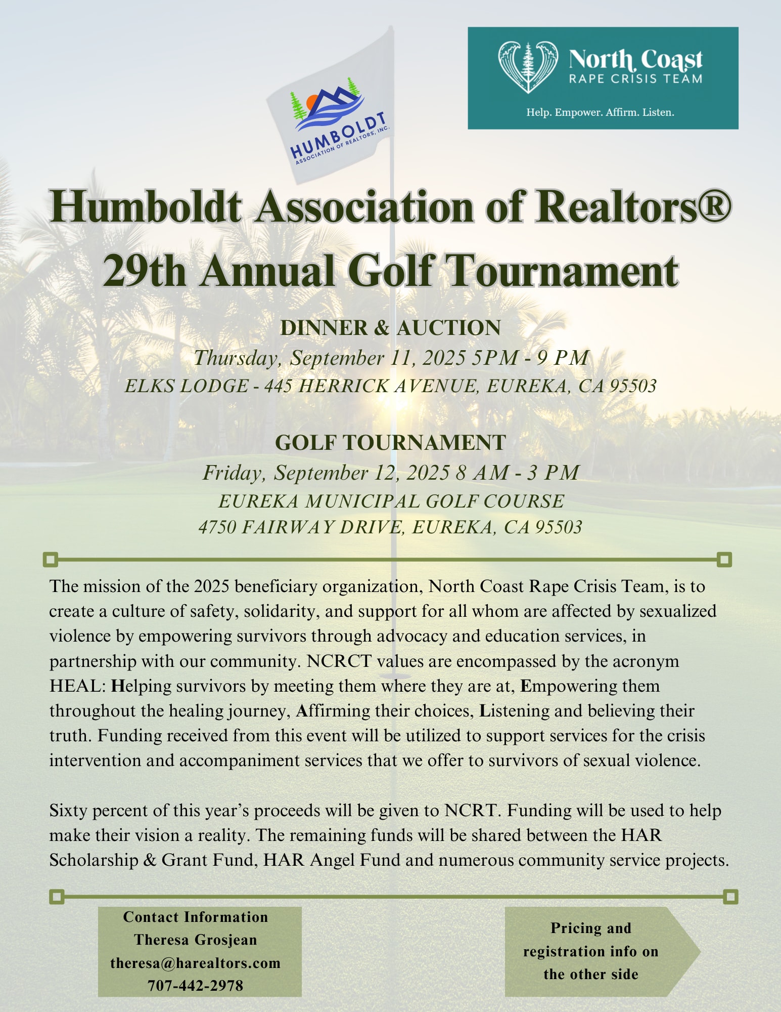The Golf Tournament will be held at the Eureka Municipal Golf Course, 4750 Fairway Drive, Eureka.